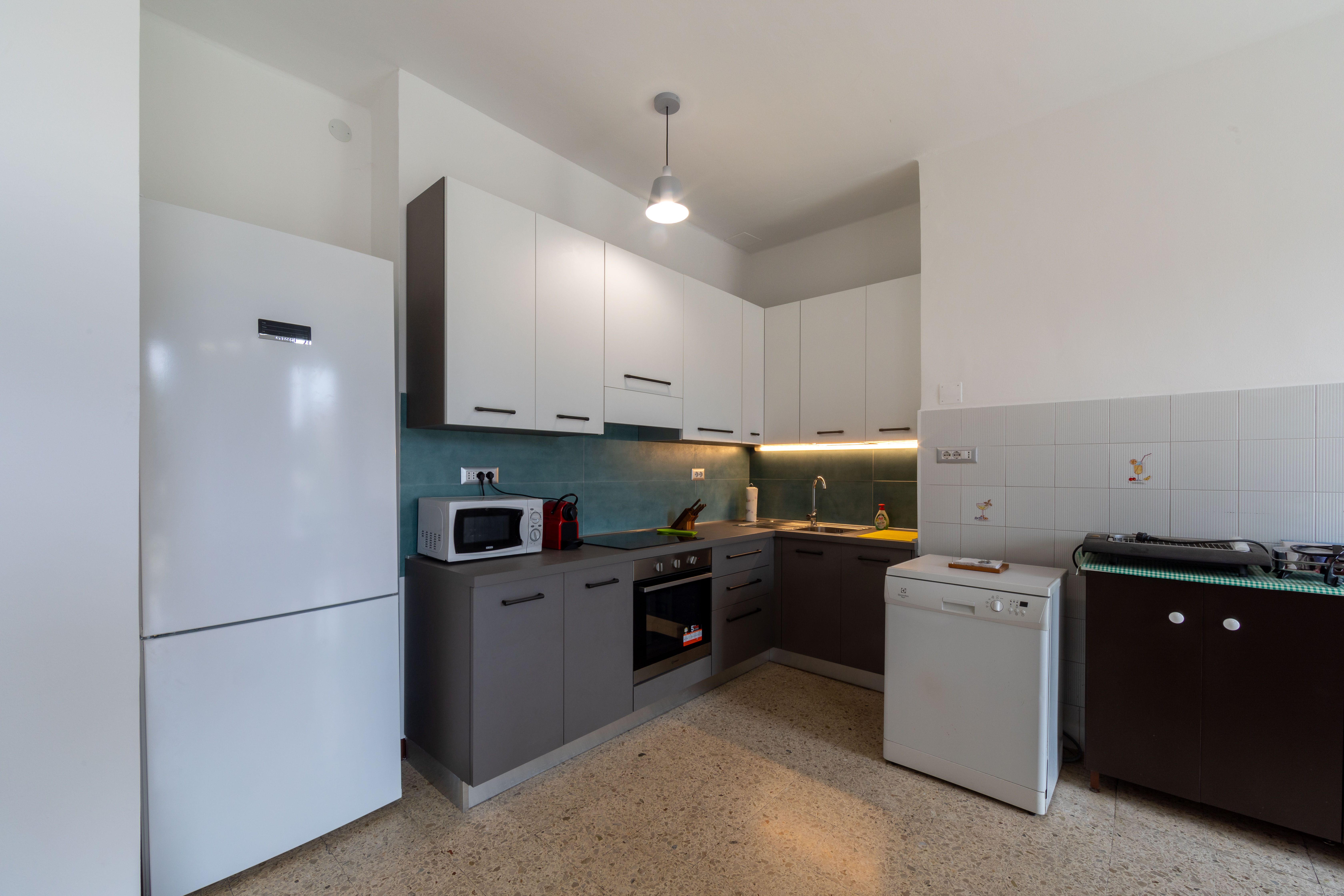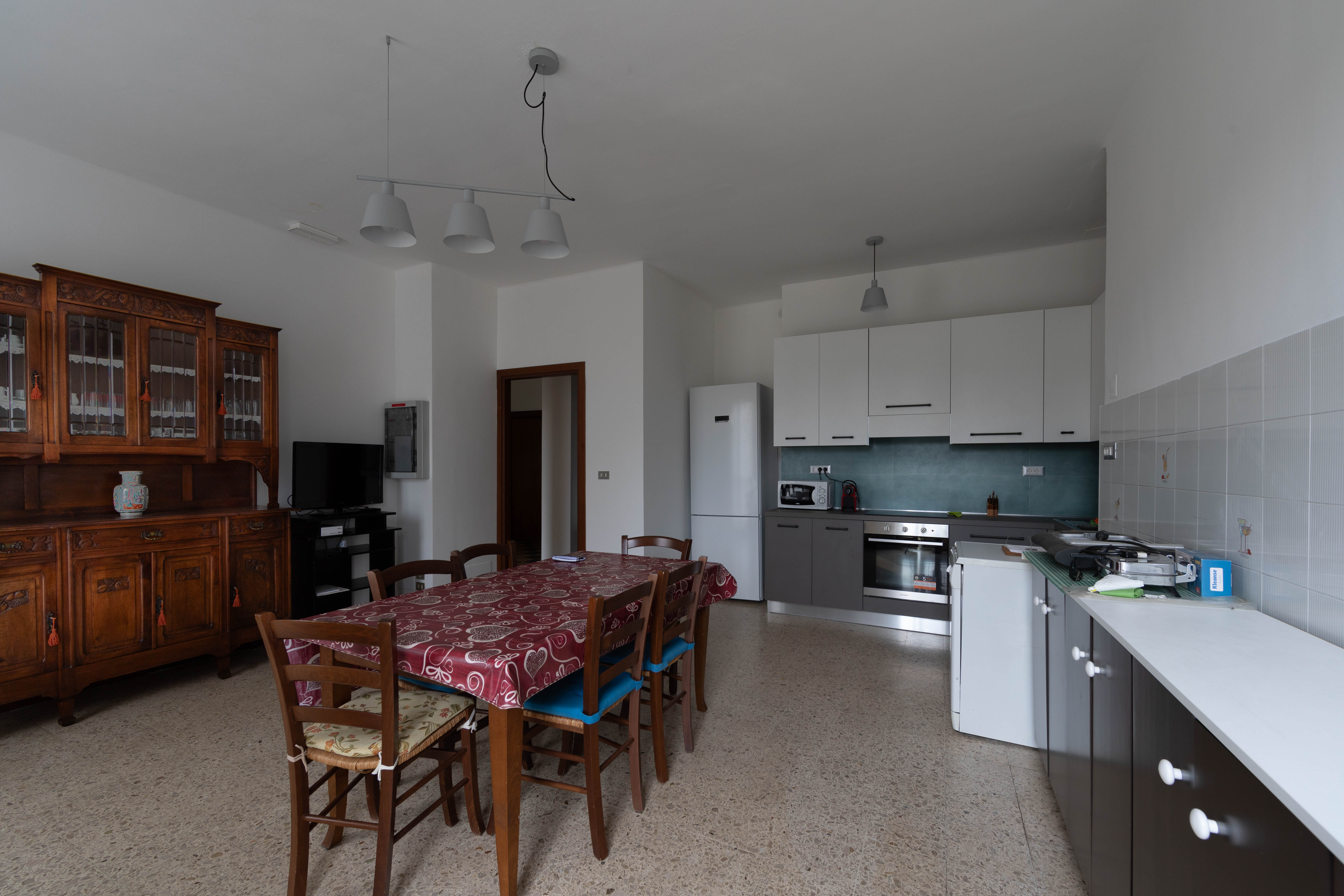 L’AREA CUCINA è attrezzata con piastra ad induzione, grande frigorifero, forno, spazi di lavoro, tavoli, sedie. Le stoviglie sono fornite dalla Residenza. Ad ogni ospite viene assegnato uno spazio personale dove custodire i propri prodotti alimentari. (Guarda anche la zona soggiorno)